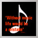 Sem música, a vida seria um erro - uma grande nota musical-branca sobre fundo negro