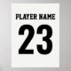 Celebre o seu jogador favorito com esta design impressionante feita para se parecer com o fundo de uma camisa desportiva. Personalize com um primeiro ou sobrenome e número. Perfeito para entusiastas esportivos, este poster é ideal para crianças e quartos adolescentes, salas de jogos ou cavernas de homens. O contraste preto e branco em negrito garante que ele se destaque como uma peça de declaração. Adicione à sua coleção um toque de talento esportivo.