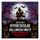Faça o tom perfeito para sua festa de Halloween com este convite de casa assombrado. Apresentando uma mansão escura e assombrada sob uma lua de cheio, jack-o-lanternas brilhantes, morcegos voadores, e árvores nebulosas, este convite é ideal para um evento fantasmagórico e arrepiante. Personalize com os detalhes do seu partido e convide convidados para uma noite de diversão espetacular