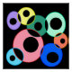 Padrão geométrico colorido simples, círculos coloridos arco-íris intersetados sobre fundo preto