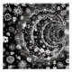 Design linear original de flores pretas e brancas com ilusão ótica de túnel. As flores desenhadas manualmente e as folhas espiralam-se em círculos decrescentes. O design perfeito para aqueles que querem algo bonito mas diferente.