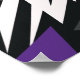 Esse design dinâmico apresenta formas geométricas ousadas em roxo elétrico, preto e branco, criando um efeito visual impressionante e moderno. Os ângulos agudos e as cores contrastantes dão-lhe uma sensação enérgica e suave, perfeita para decoração, moda ou acessórios contemporâneos. Este design é ideal para qualquer pessoa que pretenda fazer uma declaração ousada com um padrão único e na moda.