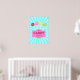Poster gráfico colorido e curado impresso com doces pirulitos retro pastel coloridos em raios azuis aqua