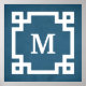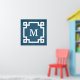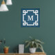 Design monograma com decoração de borda chave grega sobre fundo azul verde
