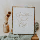 Este letreiro de despedida com letra dourada e sparklers é perfeito para um casamento moderno. O design minimalista romântico apresenta uma tipografia adorável e elegante em amarelo dourado champanhe sobre um fundo branco com um visual limpo e simples. Personalize o letreiro com a hora da sua despedida.