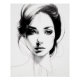 Dessin en noir et blanc d'un visage de jeune fille. Elle a les cheveux courts et peignée la raie au milieu .