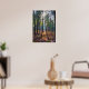 Um belo raio de sol de madrugada brilha através da floresta e ilumina um toco. Adicione vida e natureza à sua parede comprando este poster hoje.