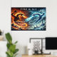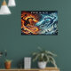 O destino do fogo e do gelo está entrelaçado nesta cena de fantasia épica, com dois dragões míticos. O dragão de fogo, escamas brilhando como lava derretida, voa através de um céu feroz, chamas balançando ao seu redor. O dragão de gelo, brilhando em tons de azul e branco, emerge de uma paisagem congelada, exalando uma névoa gelada. O fundo é um contraste notável entre os elementos ferozes e gelados. "FIRE & ICE" aparece no topo