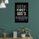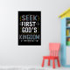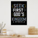 Apresentando uma tipografia elegante com as palavras Busca Primeiro, Deuses Reino em um design cativante, enfatizando a busca de prioridades divinas e iluminação espiritual.