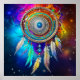 A arte AI retrata uma caçadora de sonhos colorida com penas vermelhas, rosa, azuis, verdes e brancas.