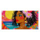 Um incrível retrato inspirado na arte pop com uma mulher com cabelos escuros e fluidos adornada com flores tropicais. Adiciona uma explosão de cor e energia positiva. Um efeito de papel algemado completa a aparência retrorreflectora.
