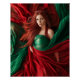 Design surpreendente com um modelo vermelho com tecido verde e vermelho. O contraste entre o cabelo vermelho feroz e o tecido verde-vivo e vermelho vívido cria um visual cativante, perfeito para expressar uma individualidade ousada. O verde evoca o crescimento e a harmonia, enquanto o vermelho simboliza a paixão e a energia — uma combinação que incorpora confiança e talento.