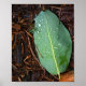 Uma folha verde solitária senta-se sobre a mancha, aplaudida com gotas de orvalho. Mande uma calma natural para alguém hoje!