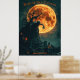 Dê vida à sua decoração do Dia das Bruxas com esta poster de zumbi arrepiante emergindo do túmulo sob uma enorme lua de cheio brilhando. Cercado por um cemitério escuro e estranho, o zumbi pinça sua saída da terra enquanto os morcegos voam pelo céu noturno. Perfeito para casas assombradas, festas de Halloween, ou fãs de mortos-vivos, este poster personalizável adiciona um toque emocionante e estranho a qualquer espaço.