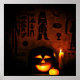 Procurando por uma adição assustadora à decoração de Halloween? Veja nossa imagem digital dos símbolos do Dia das Bruxas no estilo pictografo egípcio! Esta imagem apresenta um fundo preto com hieróglifos laranja e branco, e o assunto principal é uma abóbora esculpida com rosto e dentro de vela acesa. A abóbora está sentada sobre uma superfície preta com uma pequena abóbora laranja e uma vela branca ao lado dela. Esta imagem digital certamente adiciona um toque do sobrenatural às suas festividades de Halloween! Pegue o seu hoje! Esta design é perfeita para qualquer fã de fantasia e Halloween.