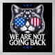 Nós não vamos voltar design apresenta um gato feroz vestindo óculos de sol de bandeira americana. Perfeito para o Dia das Eleições dos EUA 2024, ativismo político, declarações patrióticas, ou mostrar seu apoio à igualdade, aos direitos das mulheres e à justiça social. Excelente para comícios, protestos ou fazer uma declaração ousada.