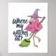 Poster Dia de as Bruxas engraçado Flamingo Rosa Onde Minh