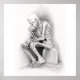 Desenho original de lápis por Jenny Speckels de um esqueleto sentado sobre um pensamento de pedra gravada.