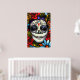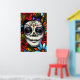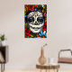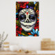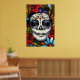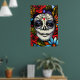 Dia floral vibrante da imagem morta em um impressão de poster de qualidade. A joia rica em flores tonadas rodeia o rosto de uma mulher pintada para o Dia Mexicano dos Mortos. Personalizável na sua escolha de estoque de papel. Tome tempo para cheirar os rosas...ou outra.