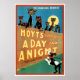 Poster de teatro Vintage para um dia e uma noite com vários gatos numa parede de tijolos olhando para um cão e seu dono. O cão está desesperadamente tentando chegar aos gatos e os gatos estão apenas tendo uma boa risada de ouro!