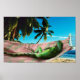 Poster de uma pintura de aquarela de extremo realismo de uma iguana verde perfeitamente reclinada, caindo ao sol tropical. Consulte impressão de canvas correspondente. Veja toda a coleção de Poster da Nature & Wildlife na seção ART & POSTERS.