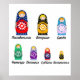 Sete bonecos deslumbrantes russos nidificando em tamanho descendente exibem os dias da semana em russo