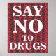 Divulgue a mensagem de conscientização sobre drogas com este pôster de 40x50 cm. O fundo vermelho escuro apresenta um padrão de caveiras feitas de várias pílulas, enquanto a mensagem em negrito e branca "diga não às drogas" ocupa o centro do palco. Pendure este pôster em seu escritório, escola ou centro comunitário para promover a luta contra o abuso de drogas.
