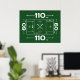 Campo de lacrosse masculino. Diagrama das dimensões do campo de lacrosse masculina com as várias medidas de medição. Poster de medições de campo de Lacrosse. Design branco sobre fundo verde de grama.