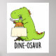Dine-osaur Funny Dinosaur Pun apresenta um dinossauro fofo atuando todo primo e apropriado sentado em uma mesa jantando em um frango assado. Um presente perfeito para a família e amigos que adoram trocadilhos de dinossauro fofos.