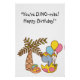 "Que surpresa pré-histórica com este adorável poster de aniversário de dinossauros! Apresentando um doce dino bebê saindo de um ovo, esta carta é perfeita para amantes de dino de todas as idades. Com cores brilhantes e um design lúdico, é uma maneira deliciosa de enviar desejos de aniversário e fazer seu dia especial de dino-ácaro extra!"