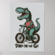 Dino on the Go, this cute kids dinosaur design features a dinosaur riding a bicycle with text saying "Fino on the go".