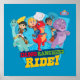 Esta design capta o espírito de aventura e amizade que define o Rancho Dino. Ele apresenta o grupo central de personagens humanos do show - Jon, Jane e Miguel - montando seus verdadeiros companheiros de dinossauro. A cena está cheia de energia e movimento, à medida que os cavaleiros e seus dinossauros embarcam numa jornada emocionante. Jon, Jane e Miguel, com suas expressões alegres, estão posicionados confiantemente em suas respectivas montagens. Os dinossauros, Blitz, Clover e Tango, renderizados no estilo brilhante e amigável da mostra, exibem uma variedade de personalidades e poses. A frase "DINO RANCHERS RIDE!" é exibida de forma destacada, acrescentando uma sensação de entusiasmo e aventura à cena. O design geral é vibrante e dinâmico, refletindo a diversão e o entusiasmo do mundo Dino Ranch.