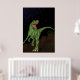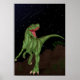 Um Allosauro corre sob um cheio noturno de estrelas e meteoros caindo. Este trabalho de arte detalhado pode ser personalizado! Você pode redimensionar ou reposicionar a imagem, assim como adicionar suas próprias imagens e texto!