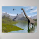 Dinossauros braquiossauros andando na paisagem hídrica por belos dias