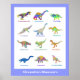 12 aquarelas Dinossauros em lindas cores psíquicas brilhantes com seus nomes dino, o perfeito design educacional para a garota que ama dinossauros. Carroçaria e barqueiro branco com placa de nome personalizada. Esse padrão paleontológico divertido inclui todos os favoritos pré-históricos da era jurássica, incluindo T. rex ou tiranossauro, velociraptores, brachiosaurus, brontosauro, stegossauro, pterodátilo voador, triceratops, spinossauro, tornosauro, plesiossauro, parasaurolofo e pachycephalossauro desafio de ortografia divertida para qualquer criança. Arte original da artista Catherine Sweetman