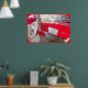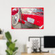 Lg. Impressão brilhante de um carro vermelho clássico, volante, painel, vintage, ©jlp
