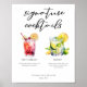 This chic signature cocktails menu poster features custom black typography above 2 drinks and their ingredients for your wedding bar. A cute Dirty Shirley Temple and Mojito drawing add a cool flair to your bar menu. Complete with the couple's names and date for their reception.