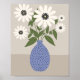 Ilustração de arranjo de flores em um vaso azul e fundo bege - flores brancas.