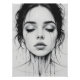 Uma vista de cima olhando para baixo para o rosto de uma mulher, suavemente fundida com lavagem de tinta diluída. A tinta suavemente sangra e segue longe de seus traços, imprimindo um sonho, quase dissolvendo qualidade. Este retrato etéreo evoca uma sensação de fragilidade e beleza transitória através de técnicas de tinta delicada e fluente.