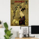 Belo anúncio de ouro vintage para vermouth.Mulher de vestido ouro à noite cheirando os cachos pendurados de uva de árvore pequena