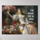 Vintage 1898 retrato feminino pintura de óleo floral com texto "Eu sou um pouco grande", citação acrescentada.