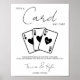 Este cartaz do livro de convidados "Escolha um Cartão, Qualquer Cartão" é uma reviravolta criativa nos livros de convidados tradicionais. Apresentando cartas de jogar preto e branco com um layout minimalista limpo, convida os hóspedes a deixar uma mensagem que os casais podem acalentar para sempre. Perfeito para casamentos modernos, chás de panela ou recepções de casino e temas de cartão.
