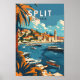 Dividir viagem de vetor retrô design. A divisão, historicamente conhecida como Spalato, é a segunda maior cidade da Croácia, depois da capital Zagreb, a maior cidade da Dalmácia e a maior cidade da costa croata.