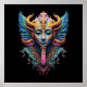 Faça uma declaração ousada com este deslumbrante design de máscara de divindade psicodélica. Compondo chifres dourados arredondados, grandes asas emplumadas e um rosto ricamente decorado em tons de verde-azulado, cobalto, violeta e dourado, esta estampa chamativa está repleta de detalhes intrincados que recompensam uma análise mais detalhada a cada vez.