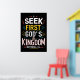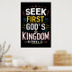 Apresentando as palavras buscam o primeiro reino dos deuses em uma tipografia ousada, cercada por intrincados símbolos religiosos e ilustrações. Divino Quest: Perseguindo o Reino dos Deuses