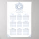 Plano de mesa do círculo clássico azul e branco do desenho do monograma de desenho. Edite este gráfico de mesas de assentos de casamento com seus próprios assentos e nomes de convidados. O círculo original moderno das folhas desenhado por Sarah Trett para www.mylittleedenweddings.com exclusivamente em zazzle.