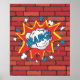 Naufragar seus amigos com este quadrinho inspirou Bang! explora através de uma parede vermelha de tijolos com nuvens e a palavra Bamg! Ilustração desenhada à mão por McBooboo. Precisa de uma cor ou fundo diferente, por favor, entre em contato comigo!