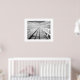 Poster é mostrado com um impressão de foto preto e branco de uma doca de passeio de praia. Personalize este item ou comprar como está. Imagem do stock