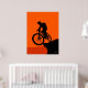 Traga ação e adrenalina para as suas paredes com este poster de motociclista. Uma silhueta surpreendente de um ciclista na borda de um penhasco explode contra um fundo laranja feroz, capturando a emoção dos esportes extremos. Perfeito para atletas, fãs desportivos e decoração aventureira moderna.