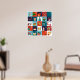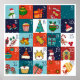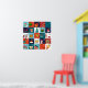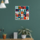 Calendário do Advento com personagens natalinos fofos desenhados à mão e enfeites, incluindo sinos, bonecos de neve, árvores, cervos, Papai Noel, coroas, flocos de neve, meias, natal, árvores e chapéus de Papai Noel. Conte os dias até o Natal!